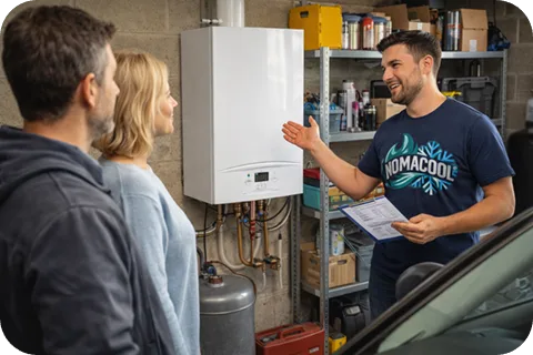 3 простых шага: получите оценку, выберите время, затем получите понятное предложение по установке кондиционера, теплового насоса, отопления, горячей воды и т.д.